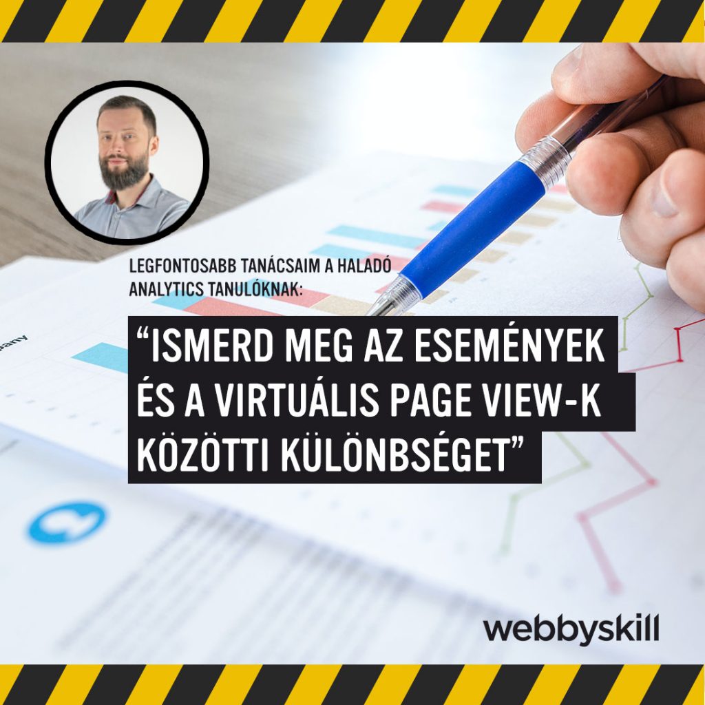 Előd: Szerintem az első, ami így eszembe jut, hogy piszok nehéz az események és a virtuális Page View-k közötti különbséget befogadni. Tudom, hogy nekem hónapokig tartott, hogy mi a különbség egy esemény és egy virtuális Page View-k között, és igazából, persze aztán az végül segített, hogy tudok programozni. Amúgy ez benne van a, tök jól ki van hozva a Google Analytics haladó képzés anyagában is. A virtuális Page View az valójában egy részleges oldalváltozás, az esemény pedig az oldalon belüli történések, vagy interakciók.